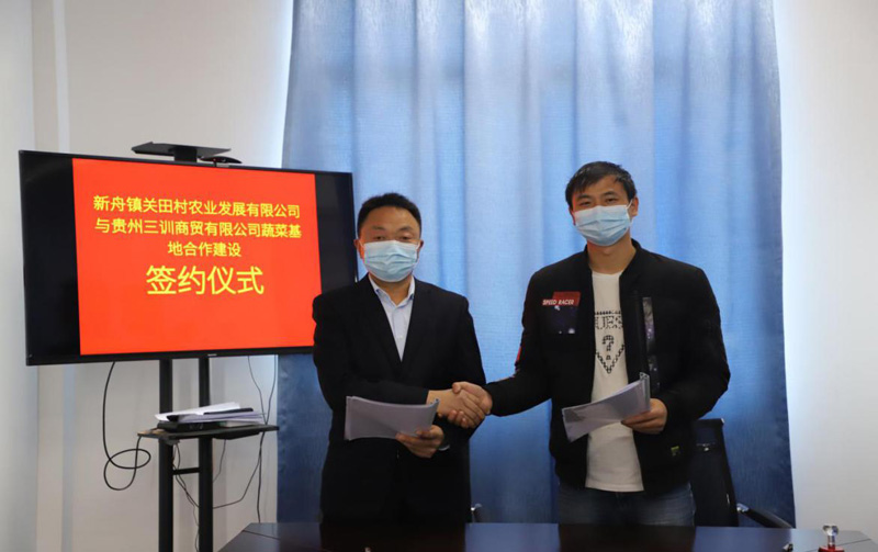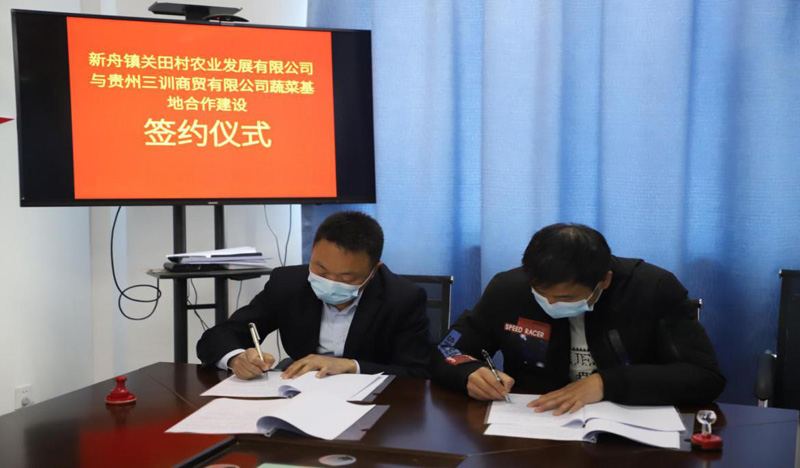 根據(jù)公司發(fā)展生態(tài)農(nóng)業(yè)戰(zhàn)略部署,結(jié)合貴州省遵義市新蒲新區(qū)新舟鎮(zhèn)關(guān)田村鞏固脫貧攻堅(jiān)成果工作計(jì)劃,經(jīng)公司與關(guān)田村村委會多次溝通協(xié)商,本著“因地制宜、特色產(chǎn)業(yè)、長遠(yuǎn)規(guī)劃、合作共贏”原則,我公司旗下貴州三訓(xùn)商貿(mào)有限公司和關(guān)田村村屬企業(yè)關(guān)田村農(nóng)業(yè)發(fā)展有限公司就共同打造關(guān)田村種養(yǎng)基地(蔬菜種植、禽畜養(yǎng)殖)事宜達(dá)成一致協(xié)議。2020年4月22日上午在關(guān)田村村委會會議室舉行簽約儀式。關(guān)田村村支書吳應(yīng)軍、主任黃國、種植專家陳明剛出席簽約儀式,總公司股東代表羅仕銀、貴州三訓(xùn)商貿(mào)有限公司負(fù)責(zé)人王訓(xùn)強(qiáng)、貴州陟翔保安有限公司遵義分公司負(fù)責(zé)人羅曉明參加簽約儀式。吳應(yīng)軍與王訓(xùn)強(qiáng)分別代表雙方簽署合作協(xié)議。