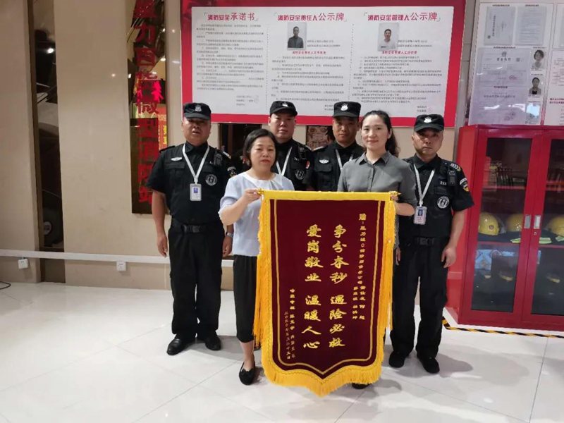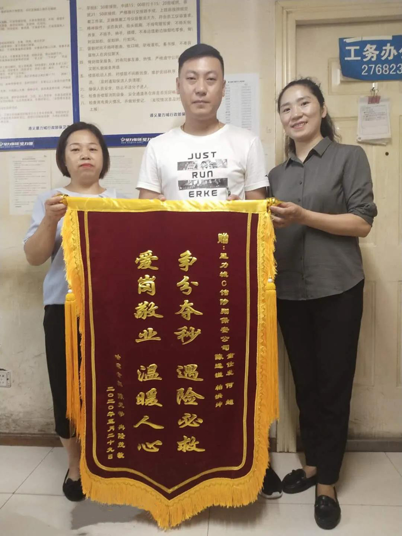 經(jīng)半個(gè)多月的治療,患者于2020年7月7日康復(fù)出院。出院后,患者在家屬的陪同下,將一面印有“爭分奪秒、遇險(xiǎn)必救、愛崗敬業(yè)、溫暖人心”的錦旗送至我公司駐點(diǎn)星力城保安隊(duì)員手中,并再三表示感謝。隊(duì)員們紛紛表示:“這是我們的份內(nèi)之事,我們的職責(zé)就是為業(yè)主和客人的安全保駕護(hù)航”。