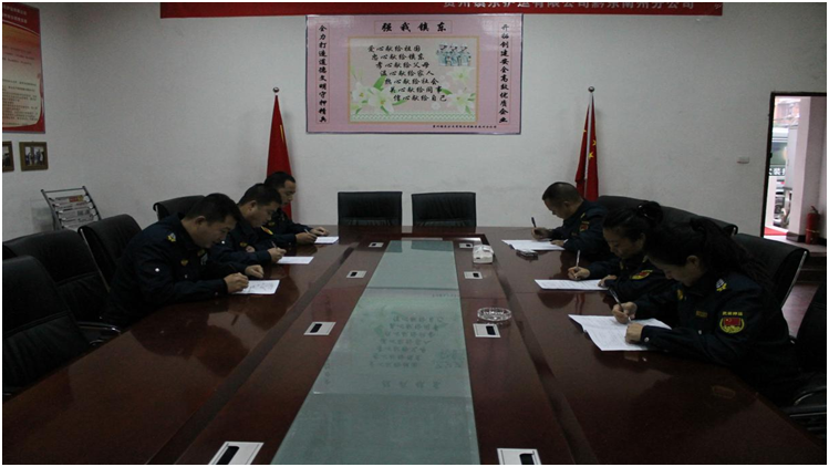 11月底,六盤水市分公司召開了月安全形勢分析會,對當月每位員工思想動態(tài)問卷調(diào)查的工作進行小結,并對12月份的工作進行安排部署。目前,押運隊伍比較穩(wěn)定,隊員思想素質(zhì)相對較好,沒有波動,各項工作順利進行。