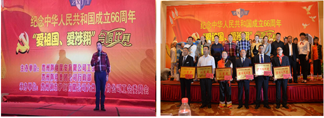 經(jīng)過1個多月的精心準(zhǔn)備,鎮(zhèn)東護(hù)運(yùn)銅仁本部、黔東南州分公司、六盤水市分公司三支代表隊于 2015年9月29日在六盤水市參加由貴州陟翔集團(tuán)組織的“紀(jì)念中華人民共和國成立66周年暨‘愛祖國、愛陟翔’合唱比賽”。經(jīng)過6支參賽隊緊張、激烈的角逐,六盤水市分公司榮獲一等獎,黔東南州分公司榮獲最佳風(fēng)采獎,銅仁本部榮獲最佳組織獎。