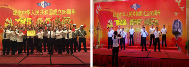 在圓滿完成“9.3”中國人民抗日戰(zhàn)爭暨世界反法西斯戰(zhàn)爭勝利70周年紀(jì)念活動期間各項(xiàng)工作之后,總公司上下繼而開展“9月質(zhì)量月”、中秋國慶“雙節(jié)”檢查慰問、“紅歌”合唱比賽等“三個活動”,提高企業(yè)服務(wù)質(zhì)量,凝聚員工士氣,宏揚(yáng)鎮(zhèn)東正能量、愛國熱忱和社會責(zé)任感,以實(shí)際行動向建國66周年獻(xiàn)禮!